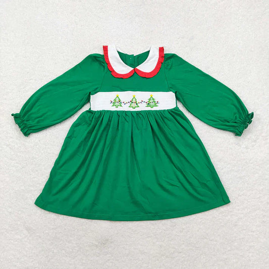 Matching Baby girls Christmas green long sleeve tree dress romper clothing smocked