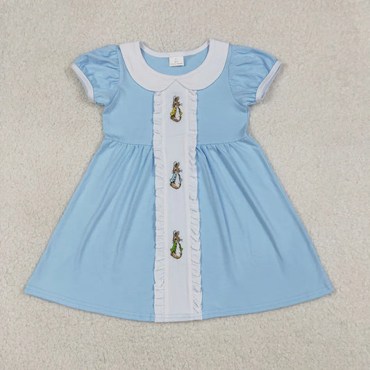 Matching Baby girls Easter bunny blue dress romper clothing embroidery