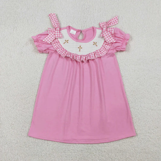 GSD3178 Baby girls Easter cross pink bow dress smocked