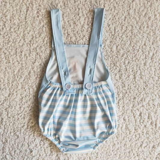 B4-9 Boys Easter Bunny Rompers Sky Blue