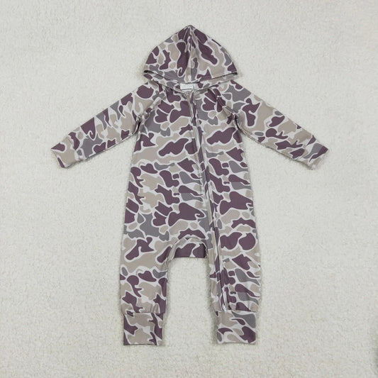 LR2811 baby boys camo long sleeves hooded zipper romper