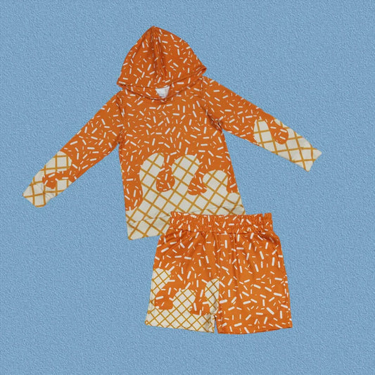 BLS0013 Boys Ice cream Waffle orange long Sleeves shorts Outfits