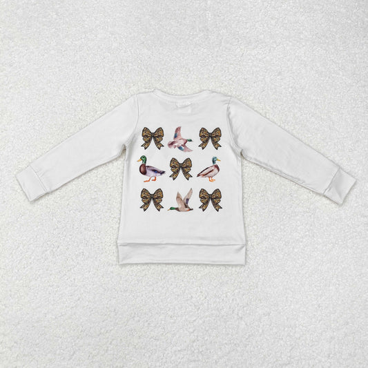 GT0887 Girls purple stripe shirt bow Top Long Sleeve embroidery