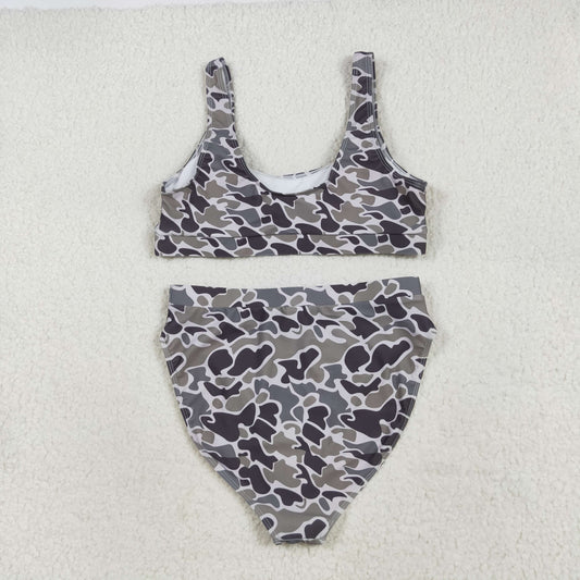 GSSO0906 Girls black plaid Bathing Suit 2pcs