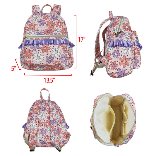BA0239 baby girls purple leopard floral Backpack 17 * 13.2 * 5 inches