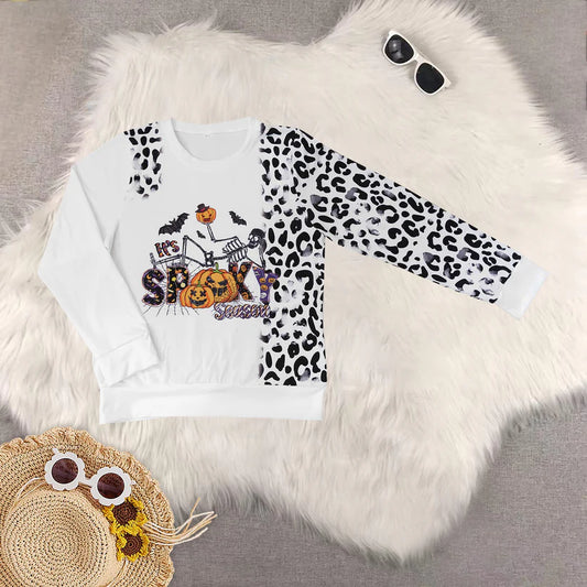 Family Matching Adult kids Halloween pumpkin leopard long sleeve top