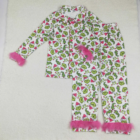 Family Matching Adult Baby girls Santa bow red furry clothing pajamas