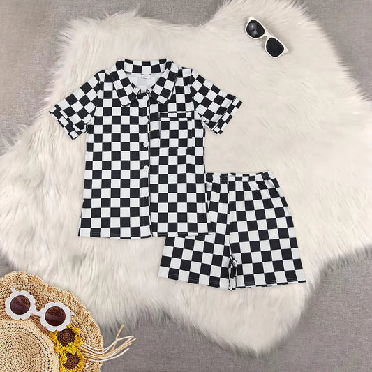 Family Matching Adult women Baby kids black checkered shorts pajamas