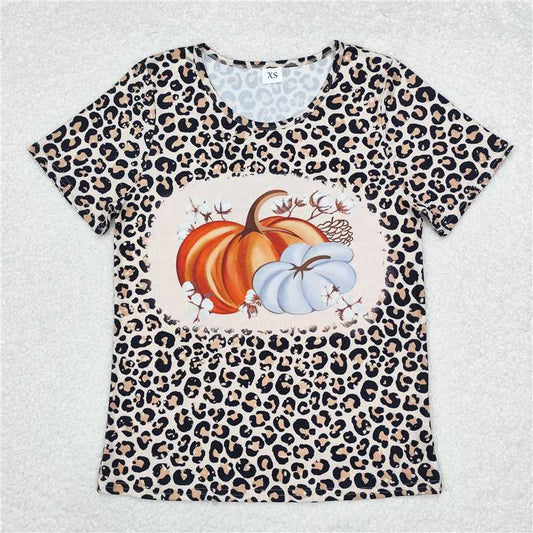 Family Matching Adult girls pumpkin leopard short sleeve top