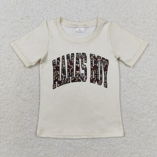 Family Matching MAMA BOY Camouflage lettering beige short sleeve top