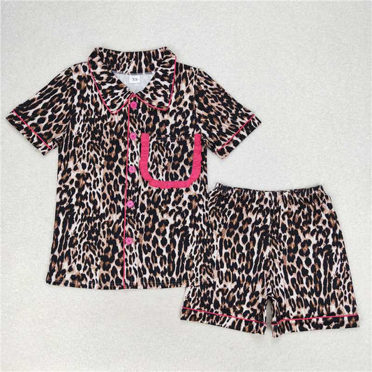 Family Matching Adult women Baby kids leopard pocket shorts pajamas
