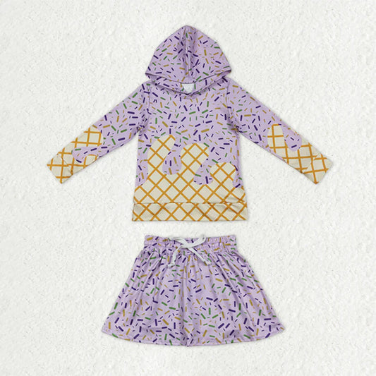 Matching Girls Mardi Gras long sleeve hooded outfits