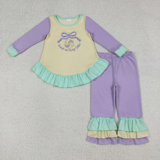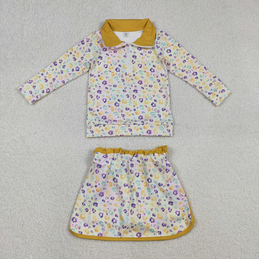 GLD1573 baby girls Mardi Gras purple long sleeve skirt Outfits