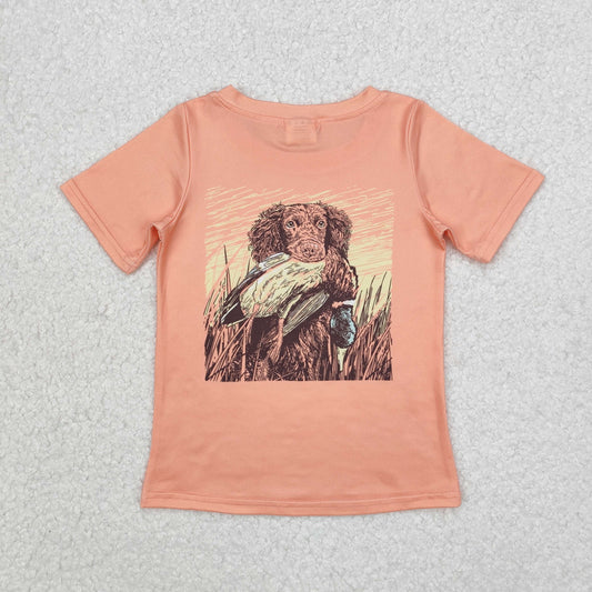 BT1084 Boys dog hunting duck orange short sleeve shirt top
