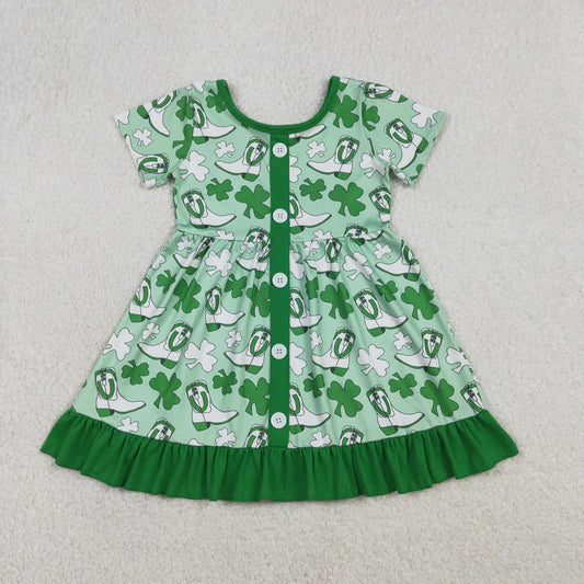 GSD3404 Baby girls St Patrick's button short sleeve dress