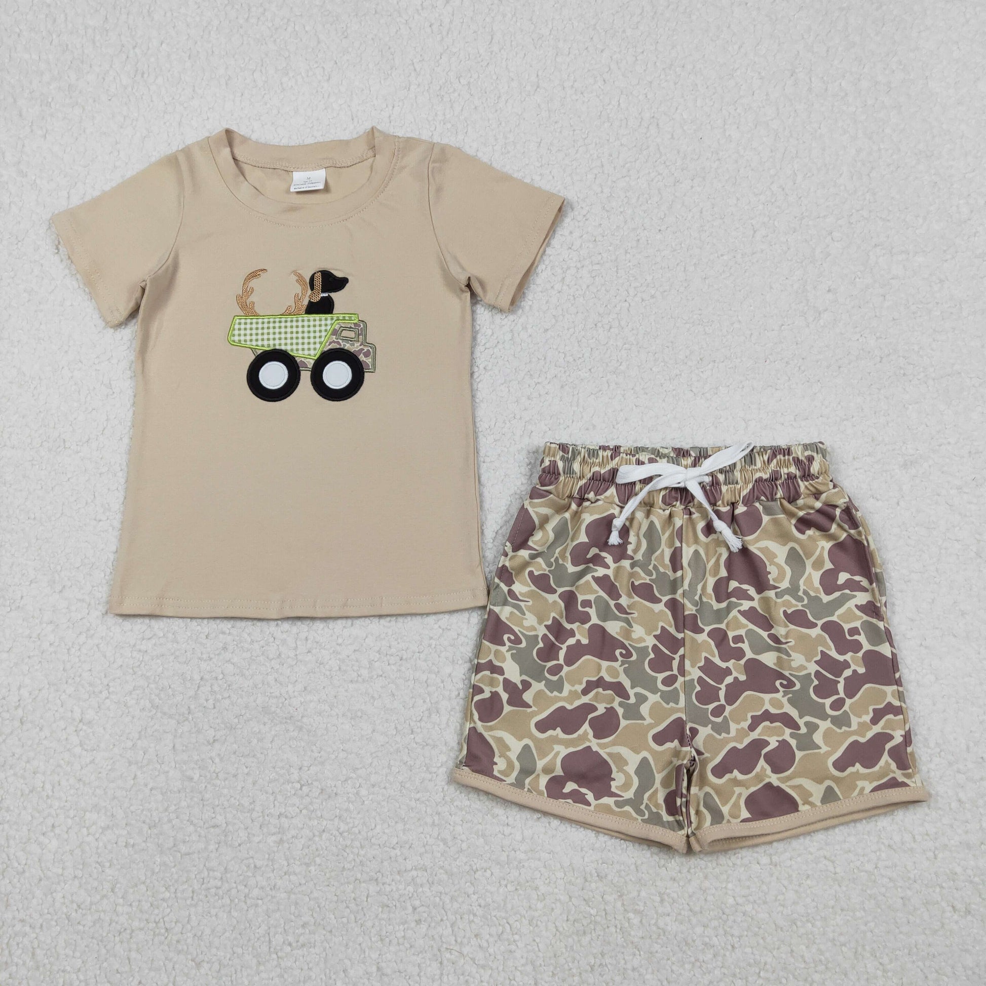 BSSO1576 Boys deer short sleeve camo shorts outfits embroidery