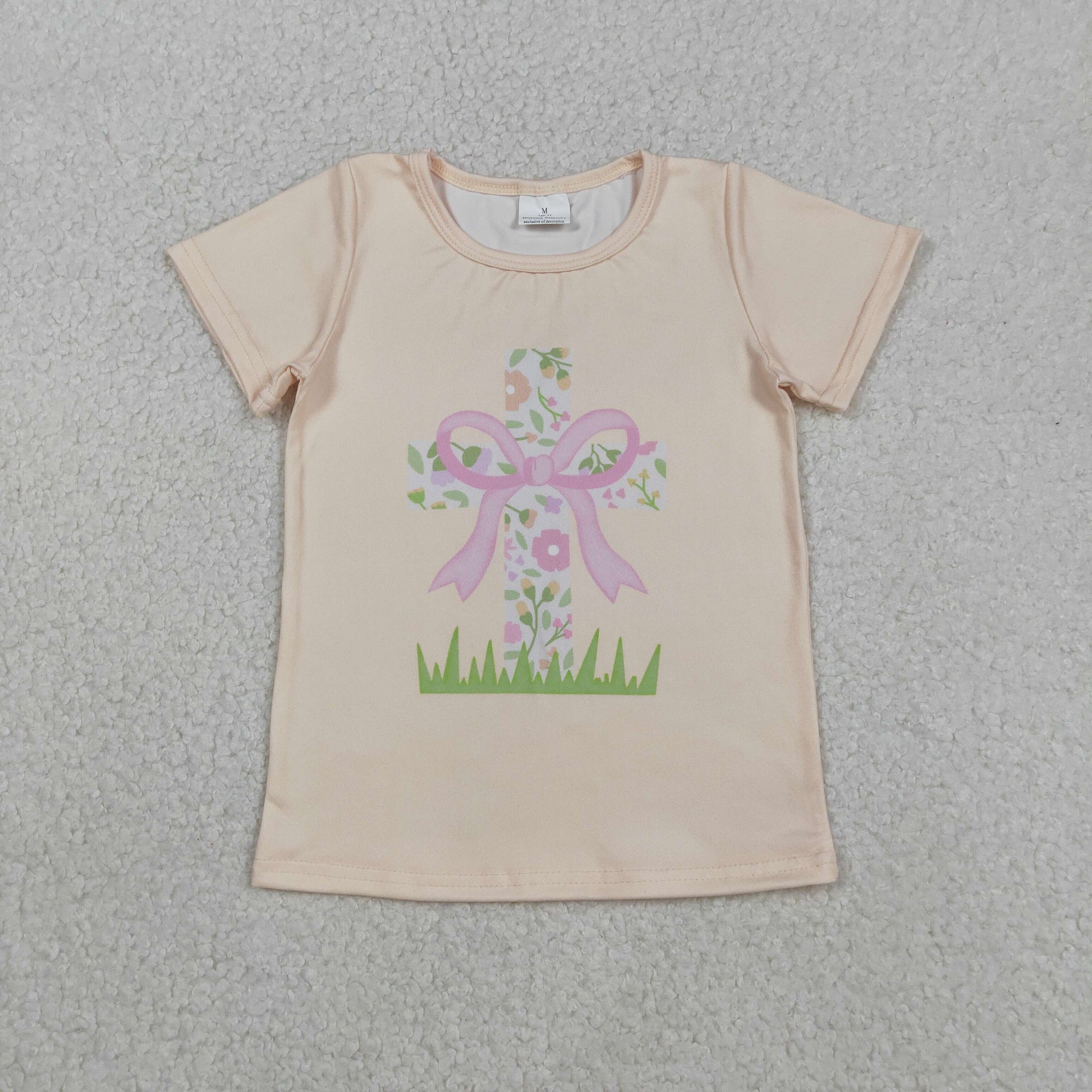 GT1397 Girls Easter cross bow short sleeve T-shirt top