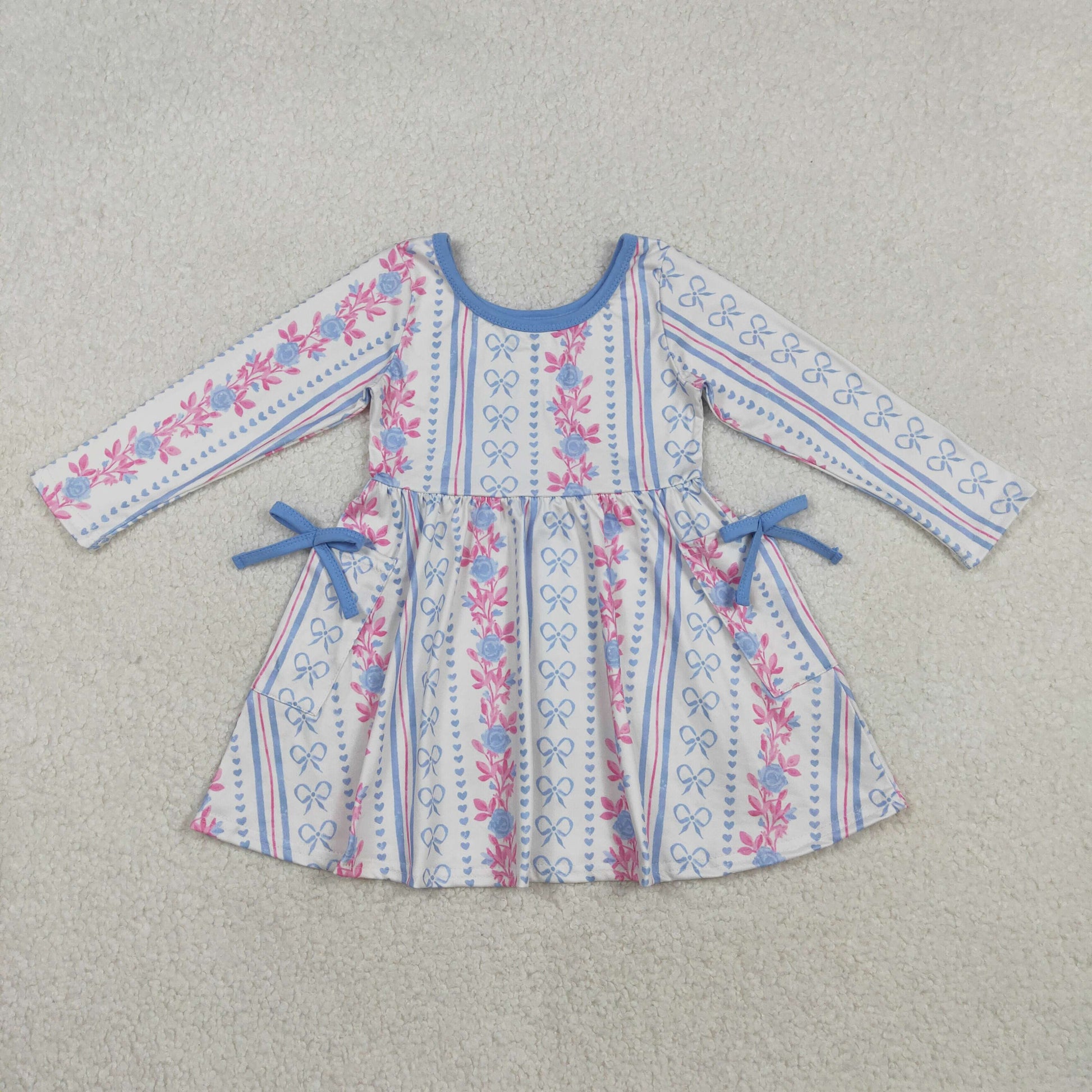 GLD1427 Baby Girls bow strip pocket long sleeve dress