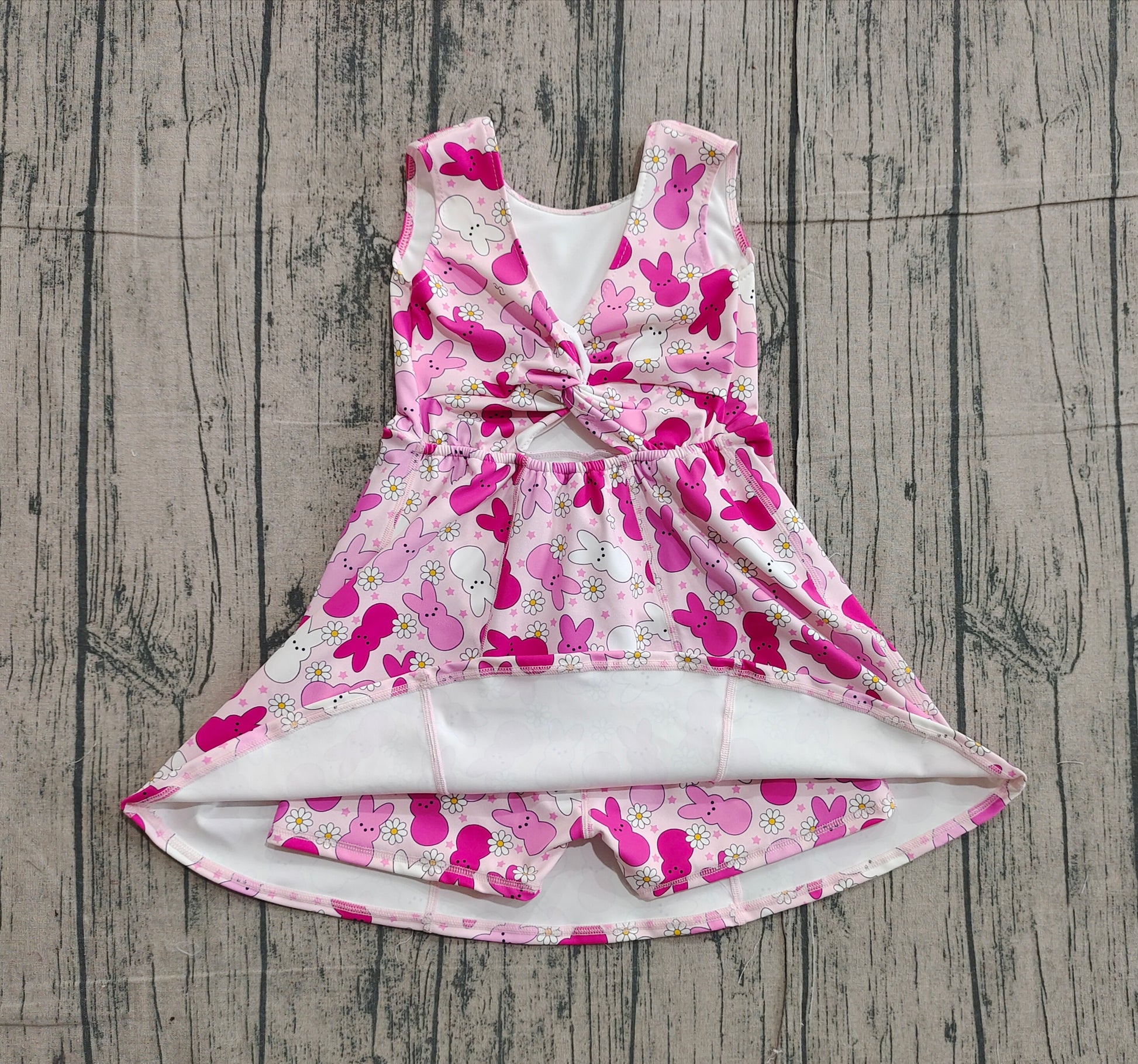 Pre-order GSD3053 girls Easter bunny rose sleeveless Dress yoga