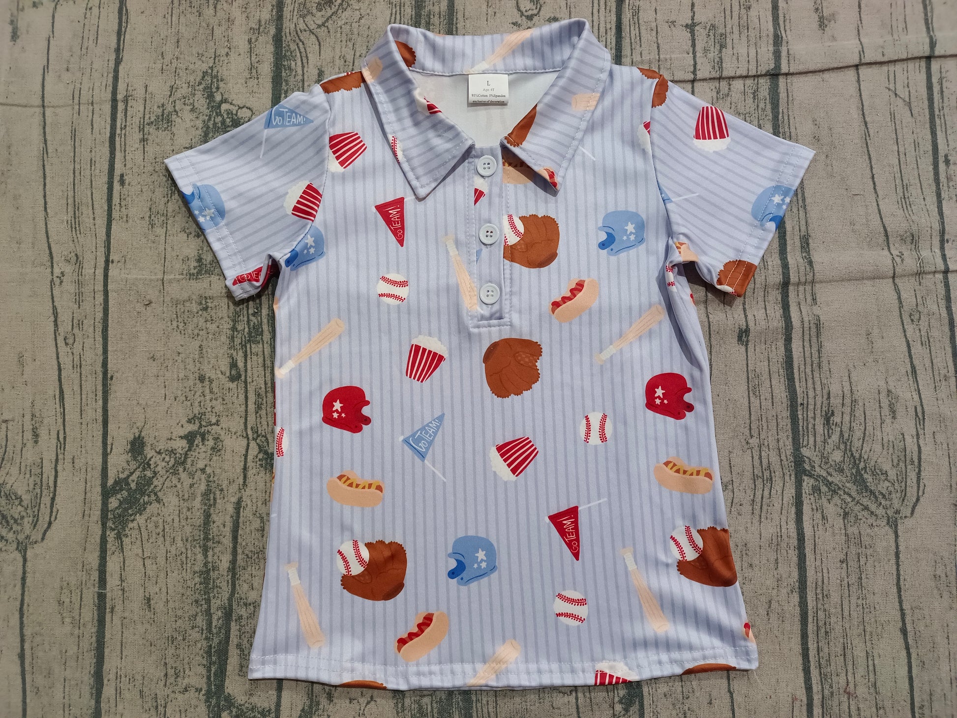 Pre-order BT1580 baby boys baseball blue stripe short sleeve button shirt top