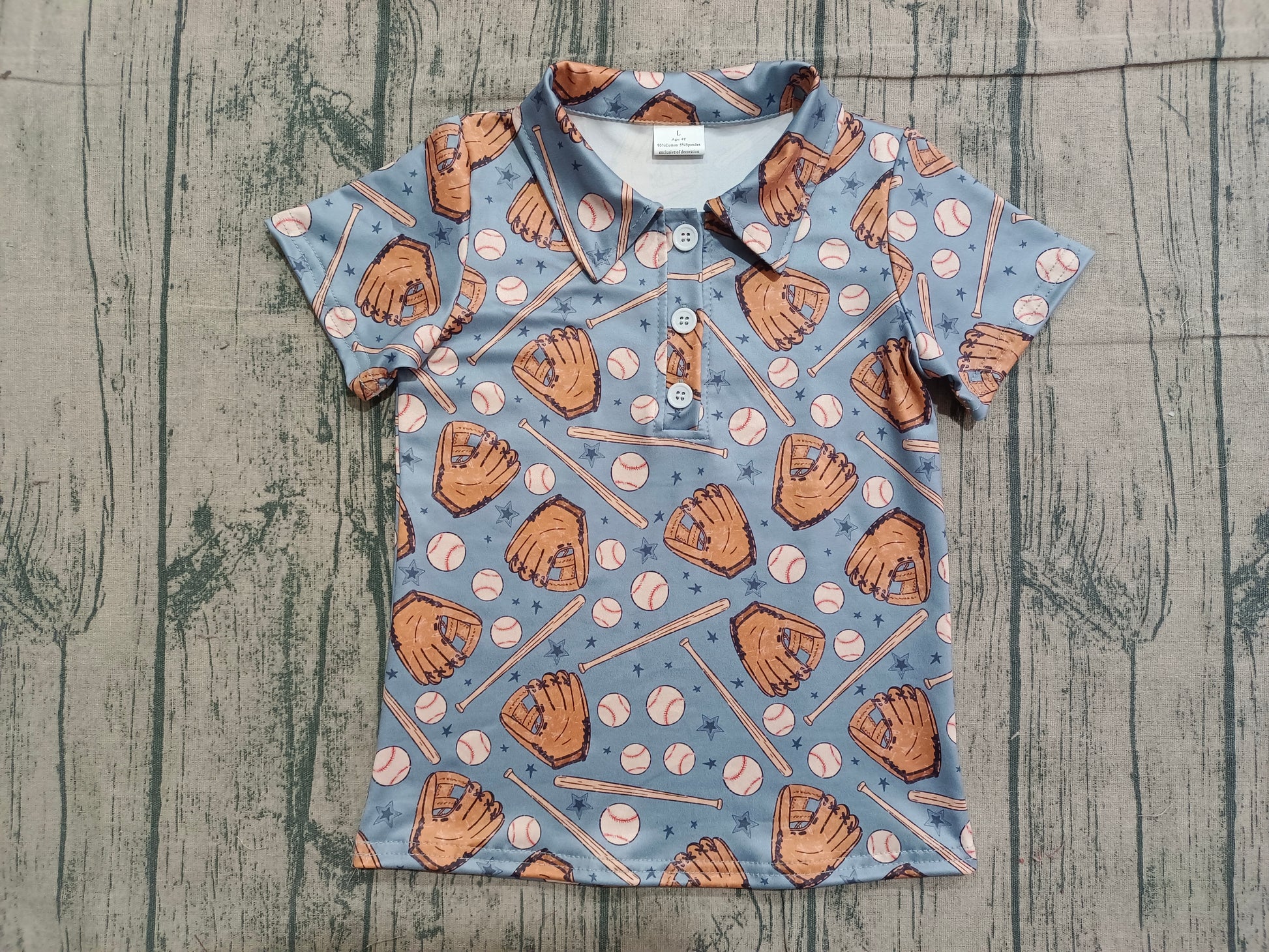 Pre-order BT1581 baby boys baseball short sleeve button shirt top