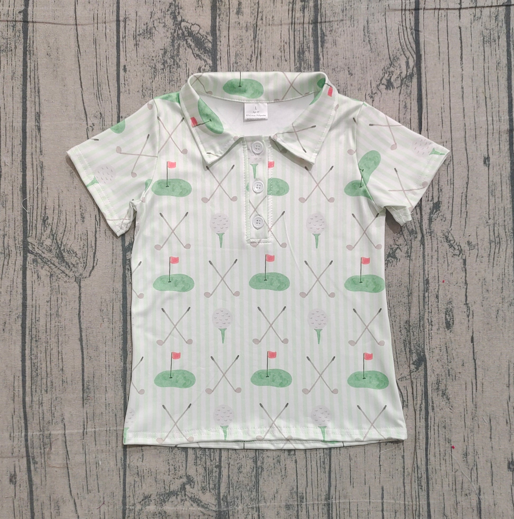 Pre-order BT1584 baby boys golf green stripe short sleeve button shirt top