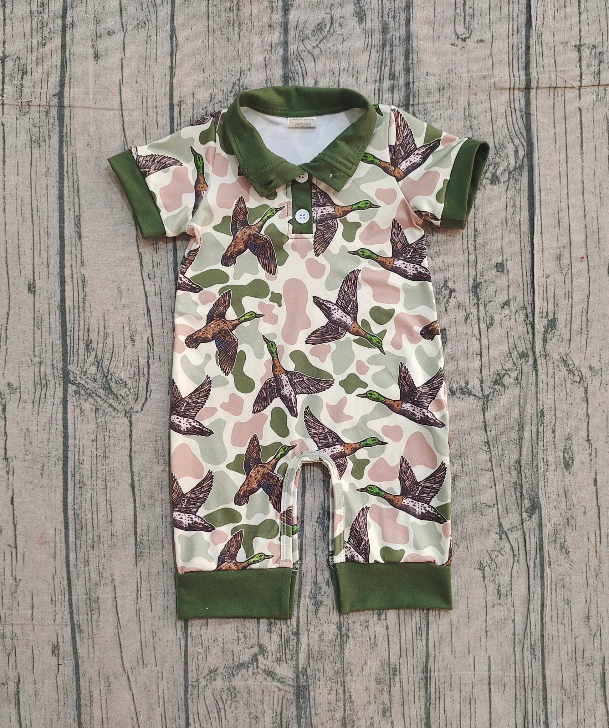 Pre-order SR3634 baby boys camo duck button short sleeve romper
