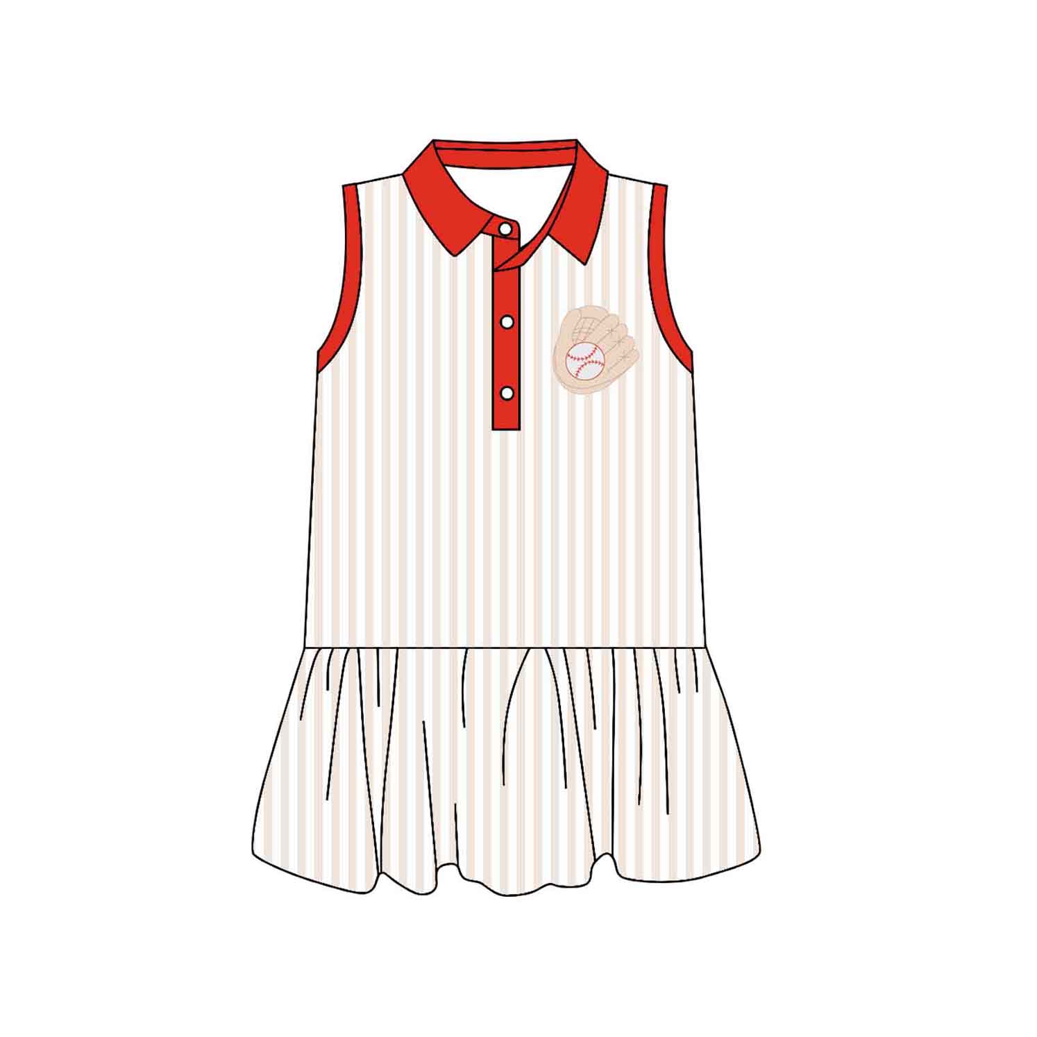 12.5 Pre-order GSD3385 Baby girls baseball button stripe sleeveless dress