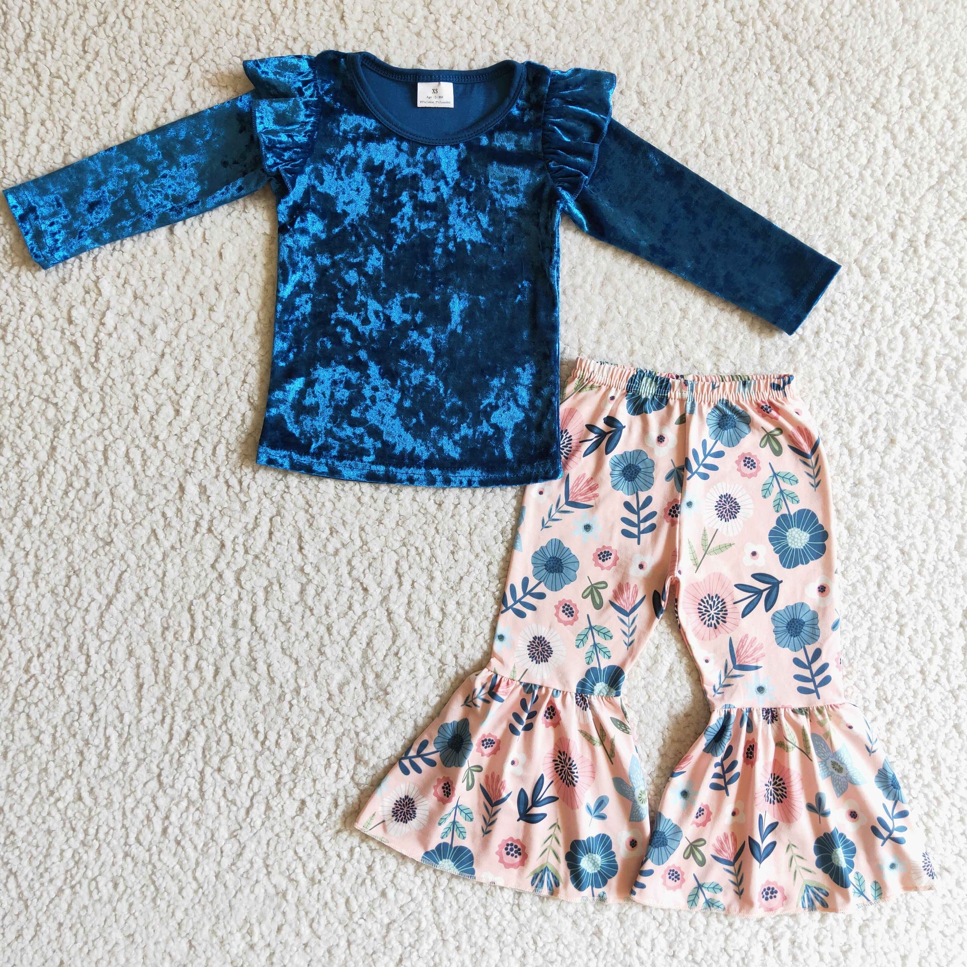 5.5 GLP0220 Girls Floral Outfits Navy Long Sleeves Pants
