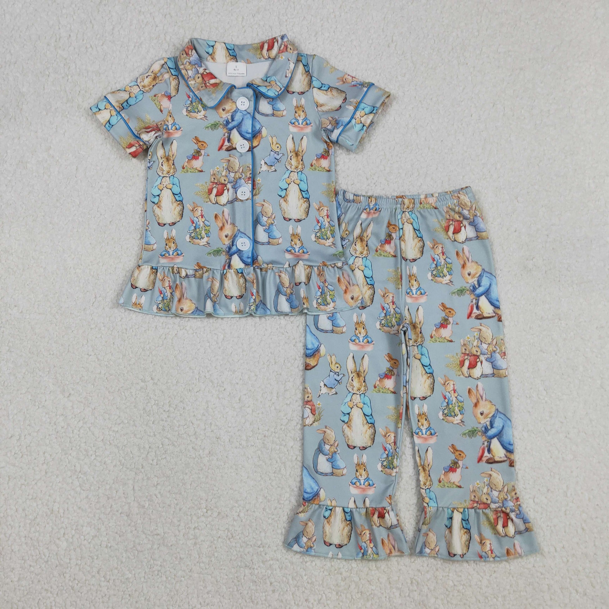 GSPO2097 Girls Easter short sleeve button bunny pajamas