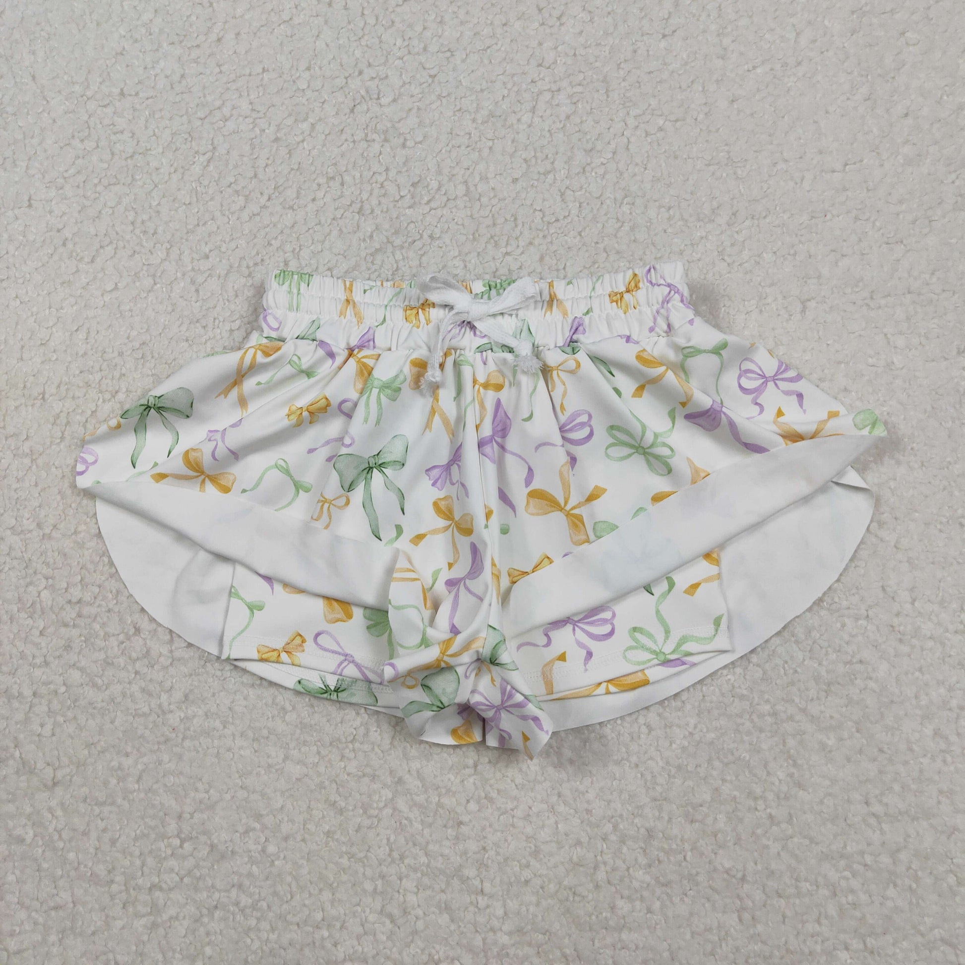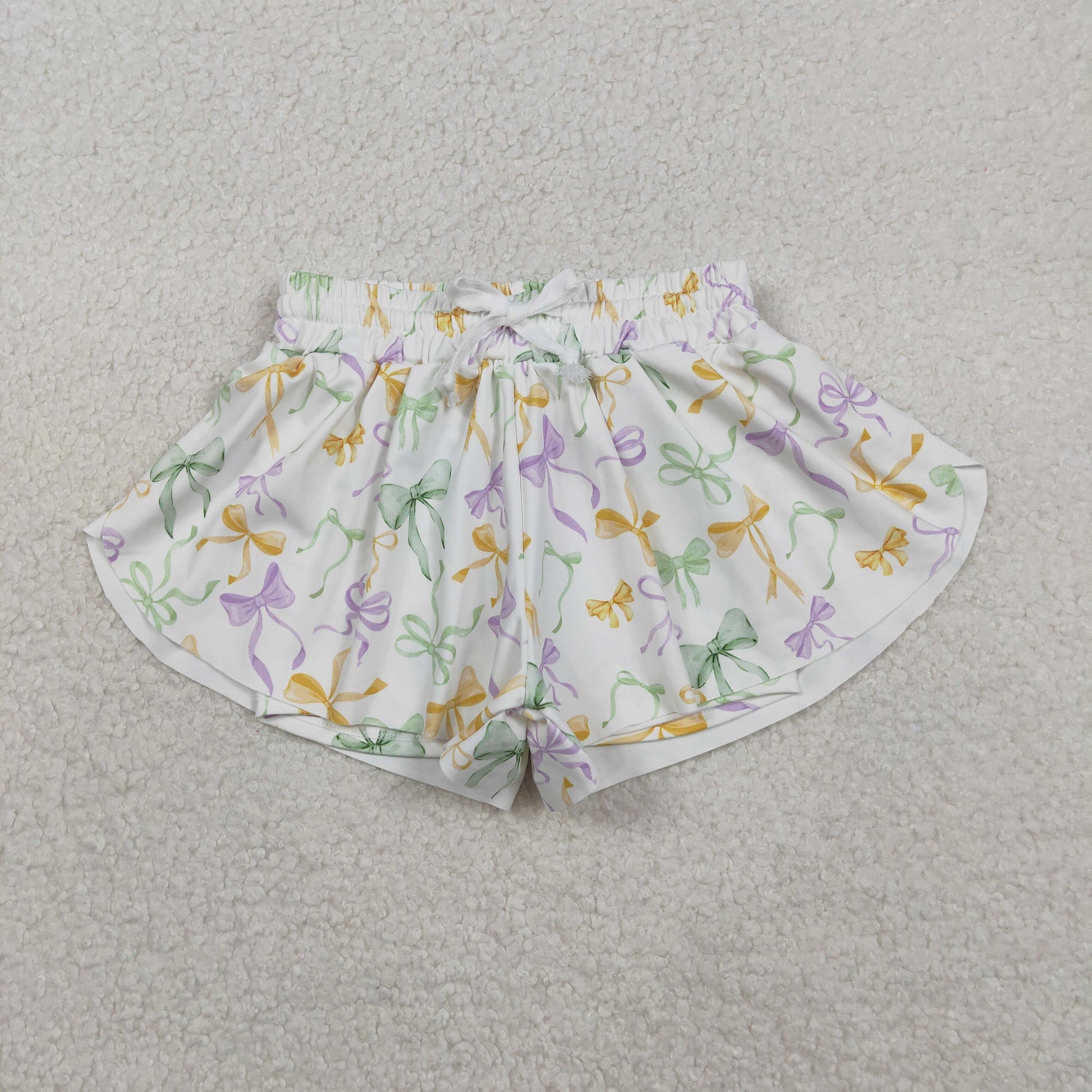 SS0682 baby girls Mardi Gras bow shorts yoga