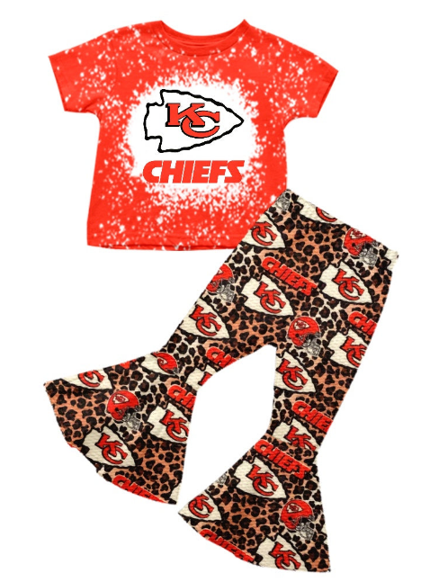 MOQ 3 Custom baby girls KC orange short sleeve leopard outfit