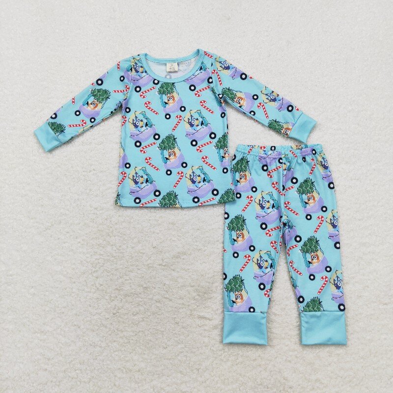 Family Matching Adult Baby girls boys outfits cartoon dog blue clothing bamboo
