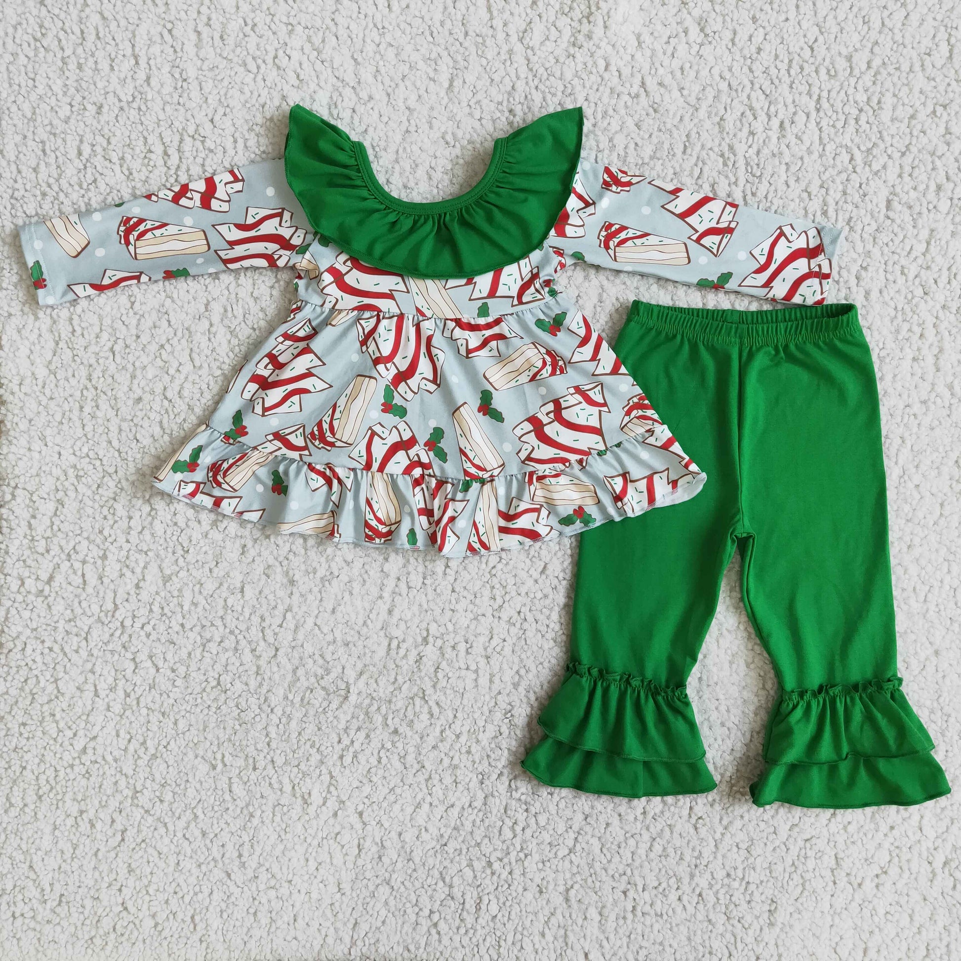 Girls Christmas Candy Outfits Long Sleeves Green Pants Bows