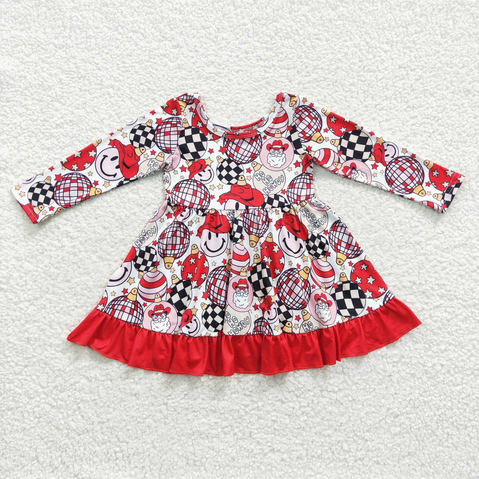5.5 GLD0209 Girls Christmas Santa Dress Long Sleeves Red