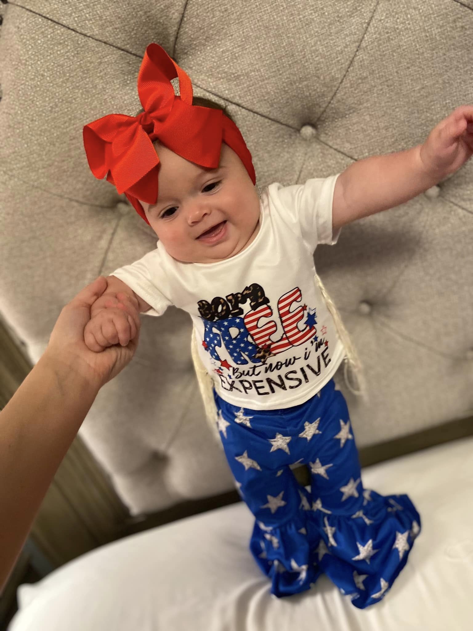 Girls USA Free Outfits Short Sleeves Tassels Blue Stars Pants
