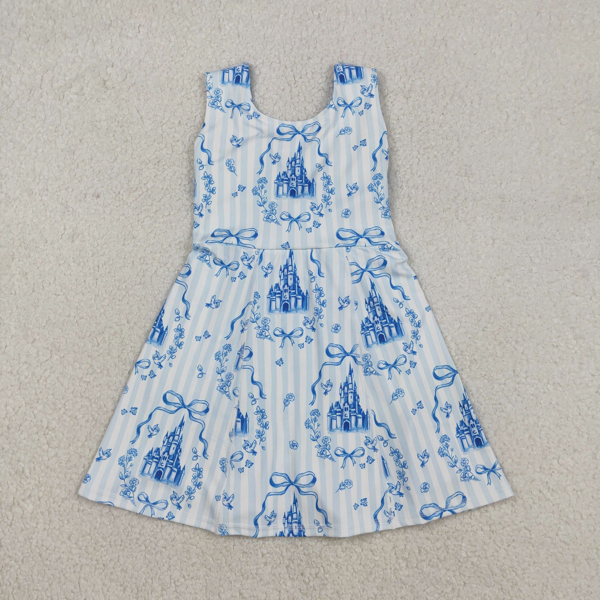 GSD3068 girls castle sleeveless blue Dress yoga