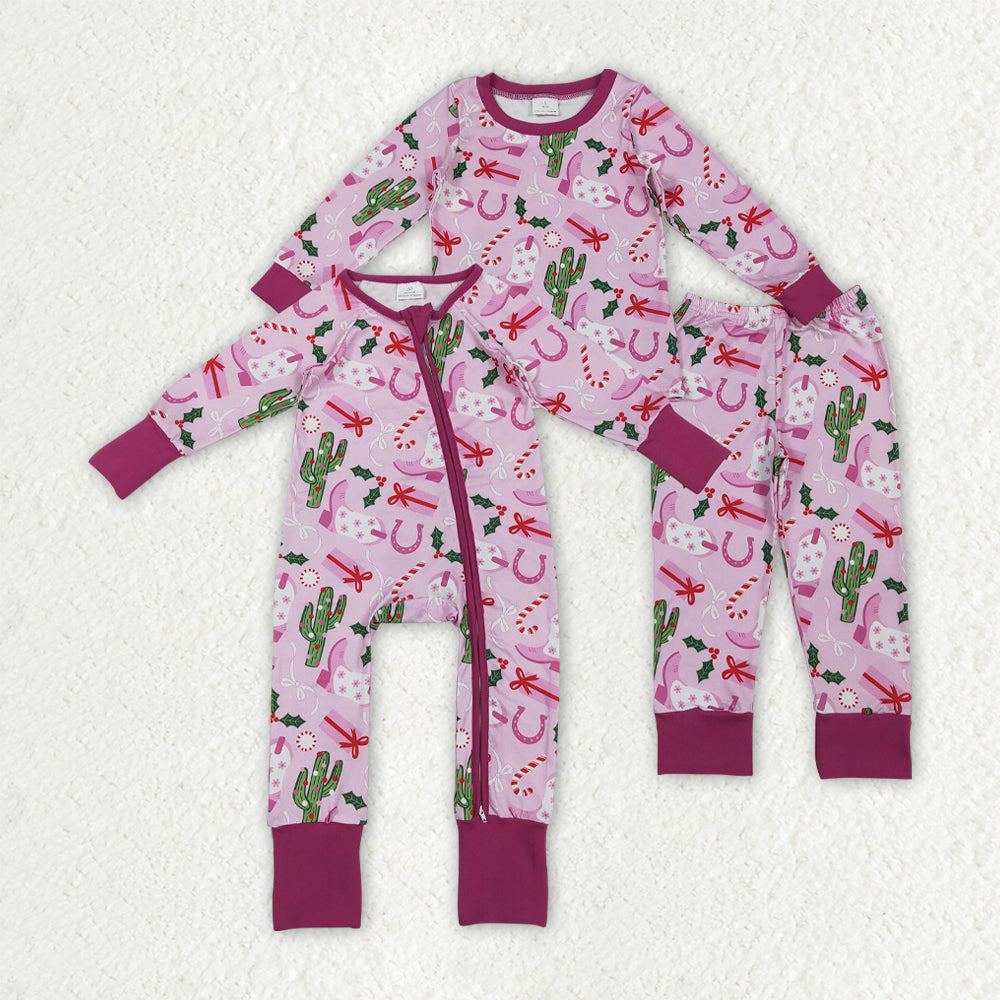 Matching Baby girls Christmas boot cactus rose romper pajamas clothing