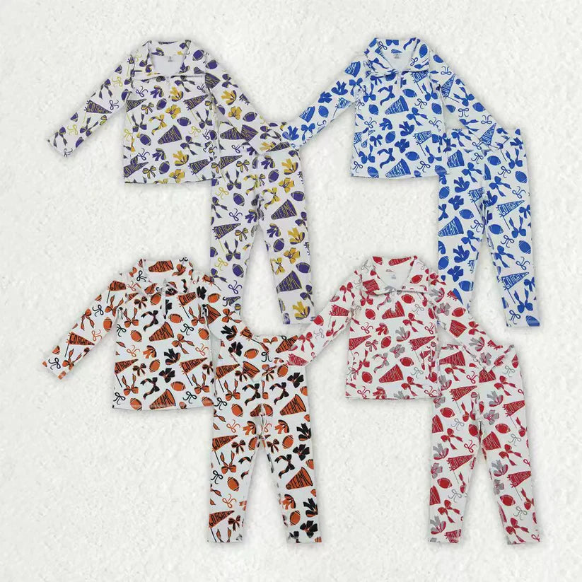 Matching RTS NO MOQ Baby Girls cheer Yoga Long Sleeve Trousers outfits set