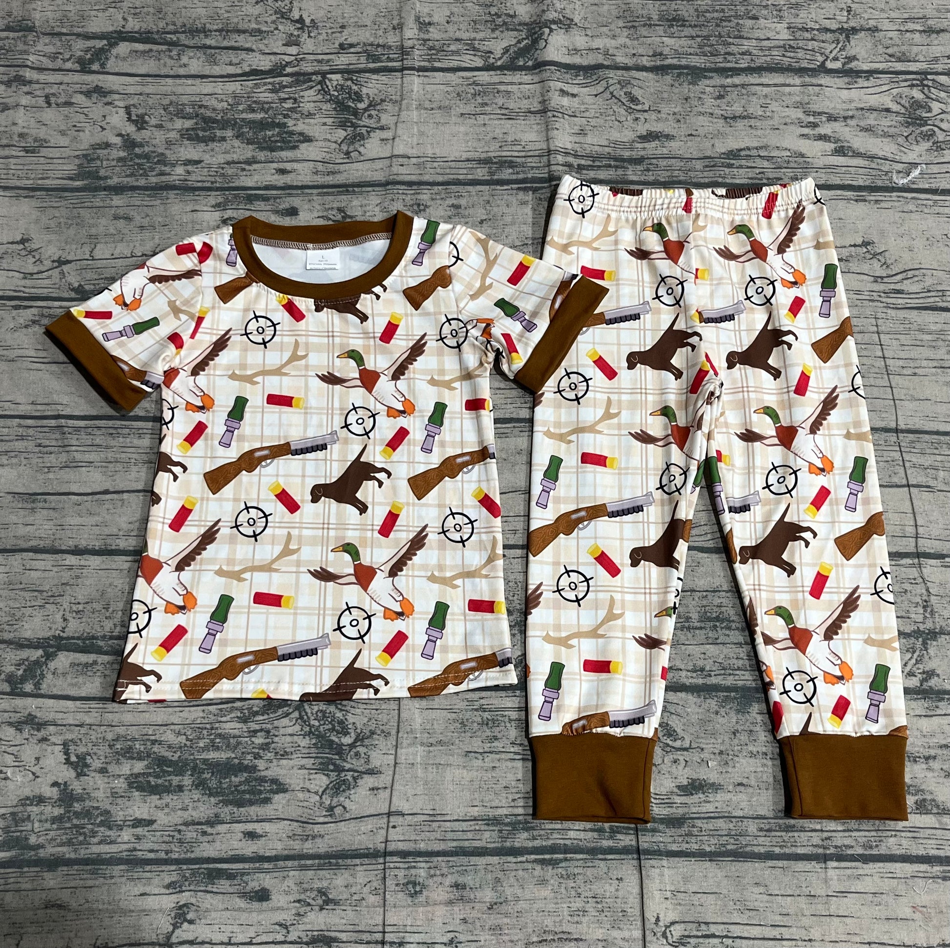 Pre-order BSPO0634 boys hunting duck brown short sleeves pajamas