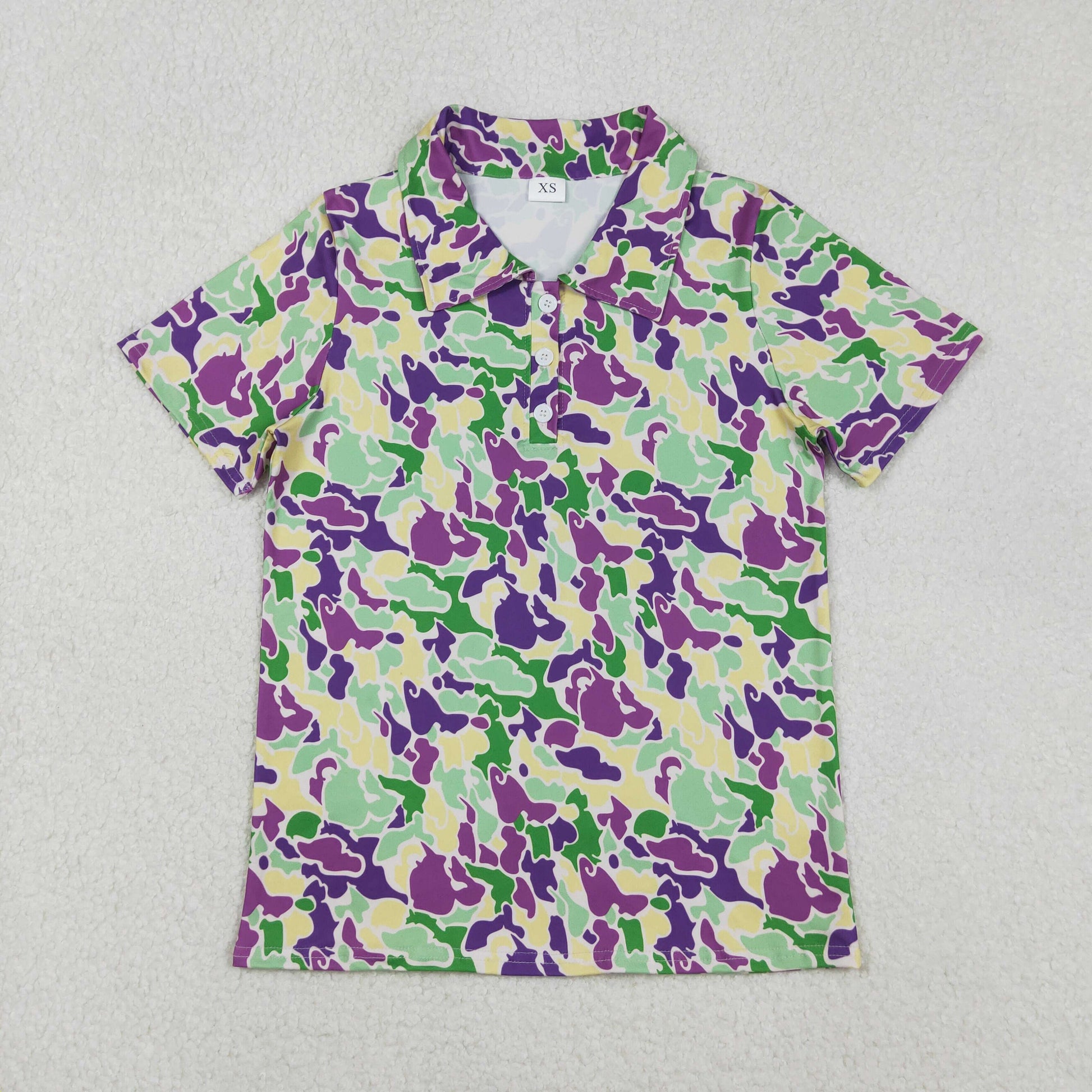 BT1452 Adult men Mardi Gras short sleeve button shirt top