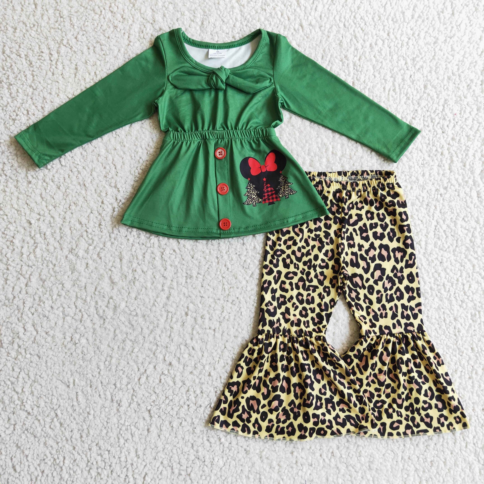 Girls Christmas Leopard Outfits Long Sleeves