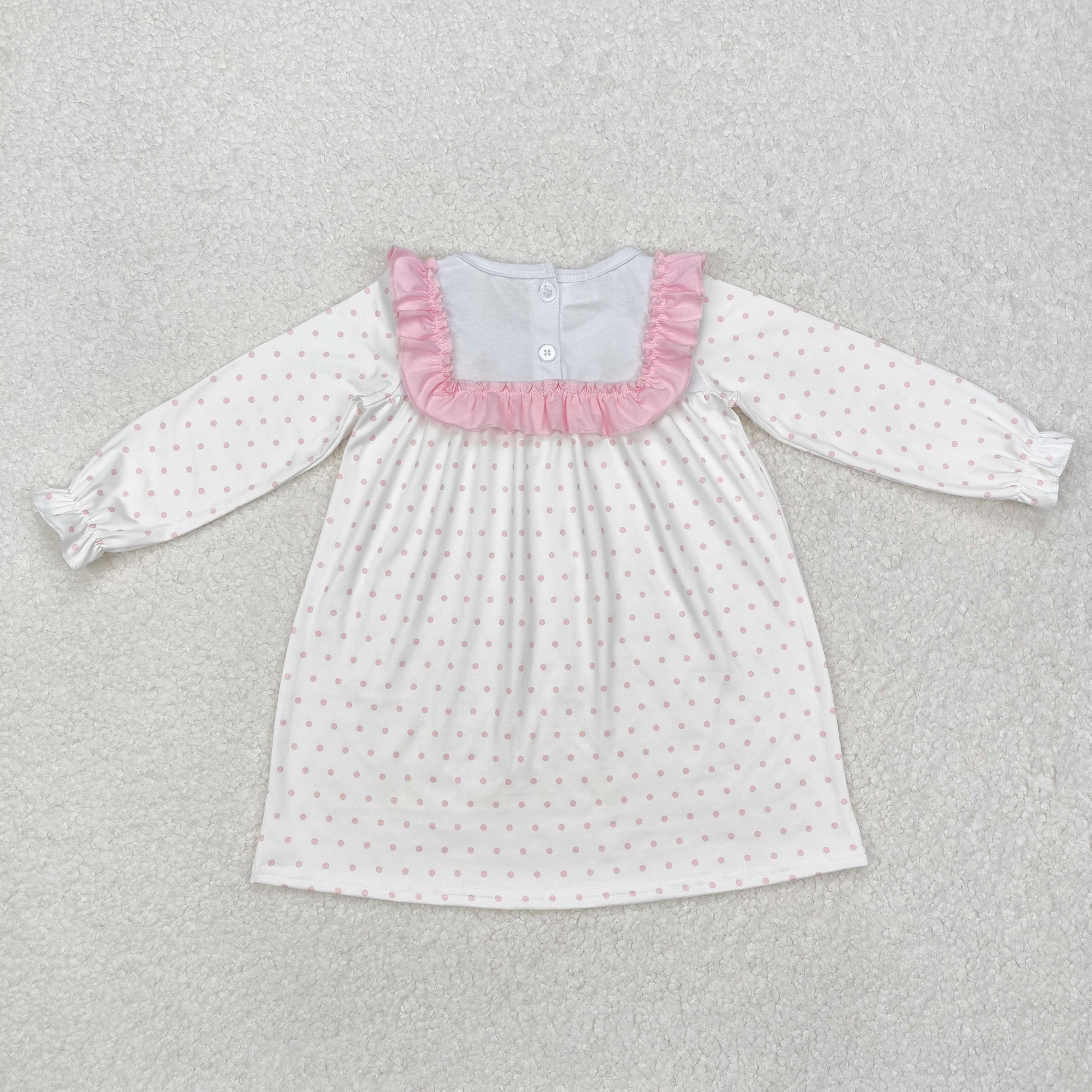 GLD0981 baby Girls pink cross long sleeve lace neck Dress embroidery