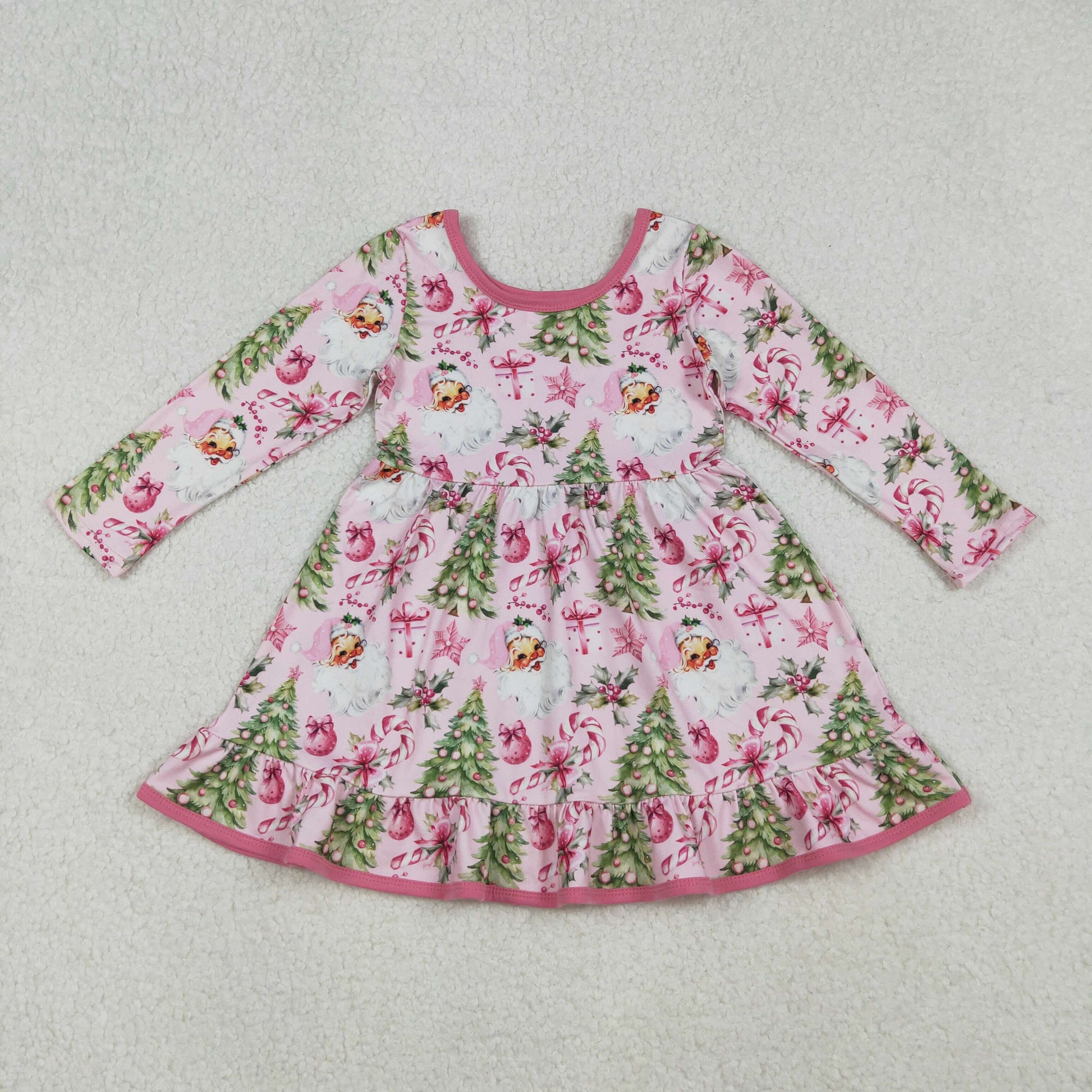 GLD1252 girls Christmas Santa Claus tree pink long sleeve Dress