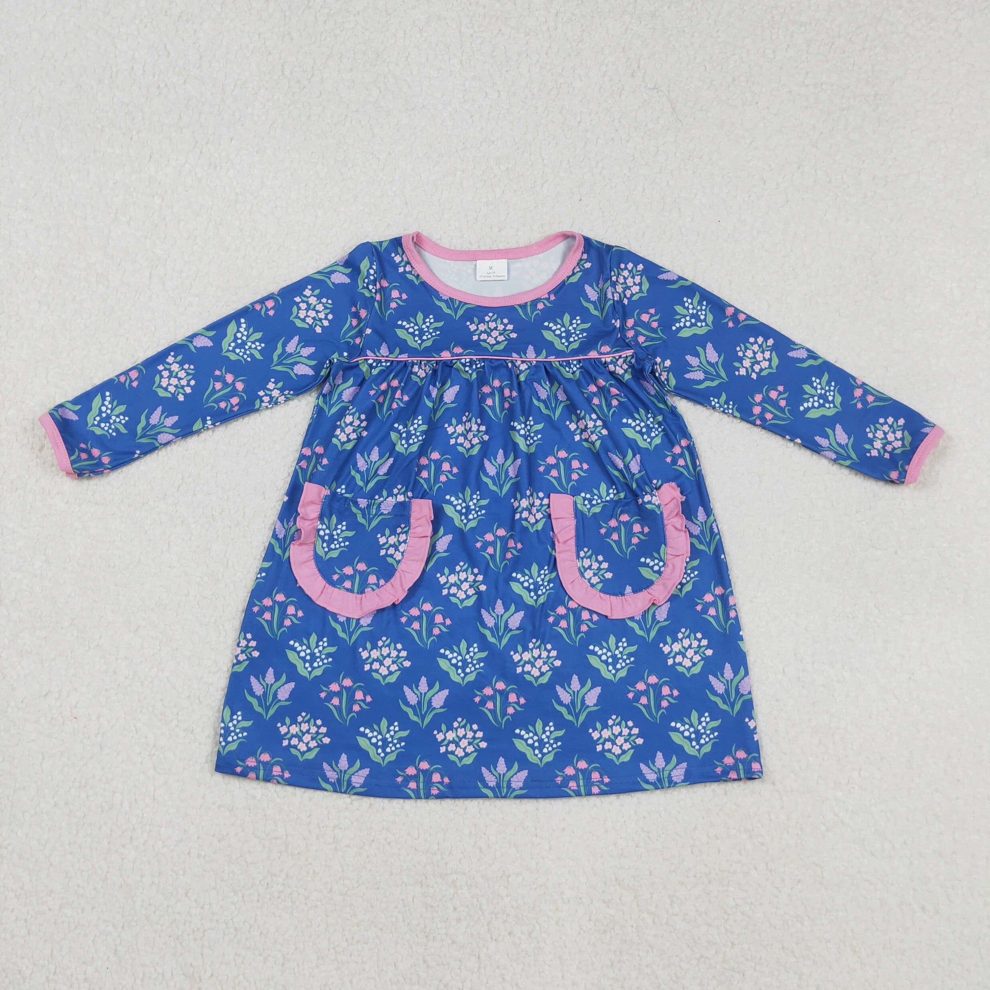 GLD1257 girls pink long sleeve flower skirt Dress