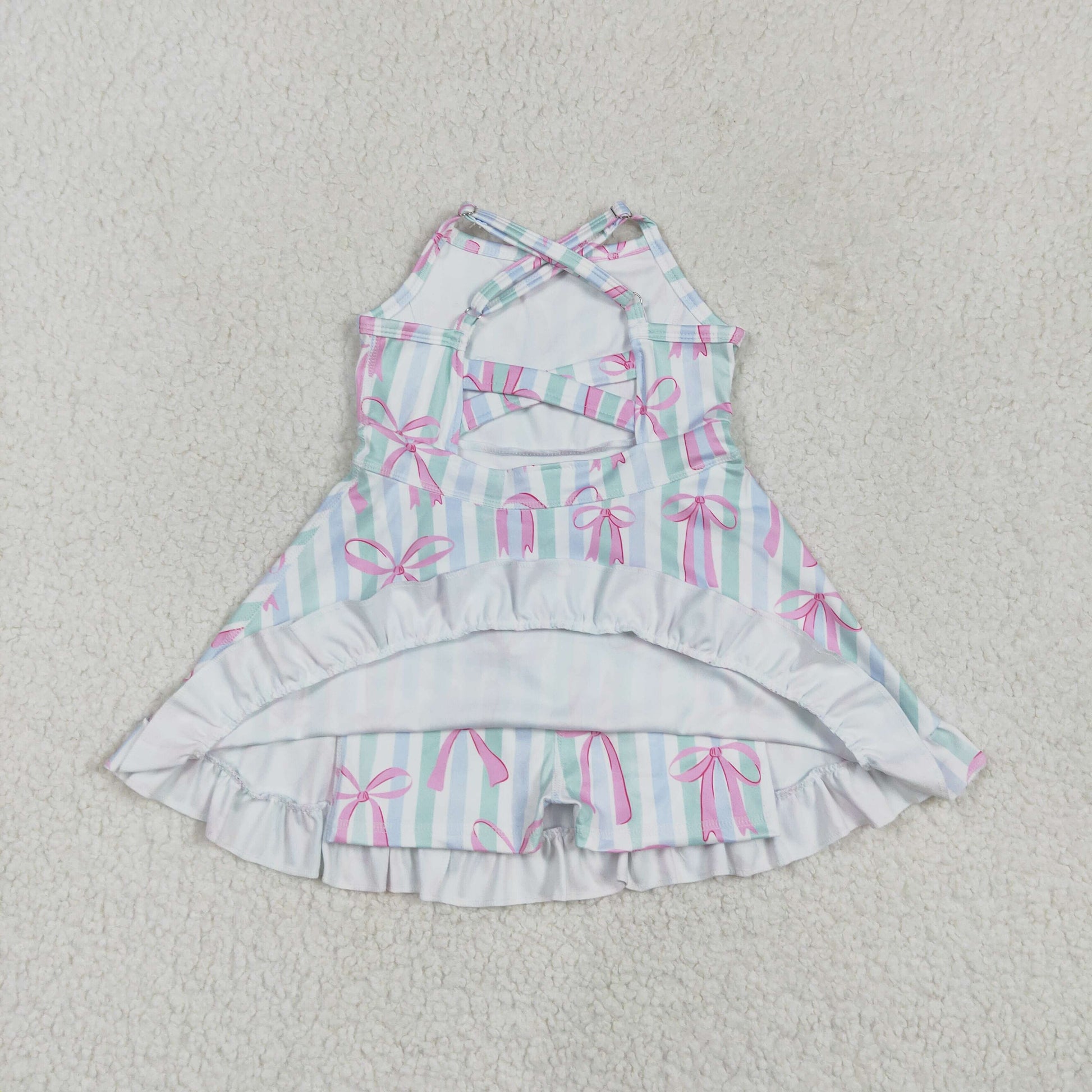 GSD2297 girls sleeveless rose bow stripe Dress yoga