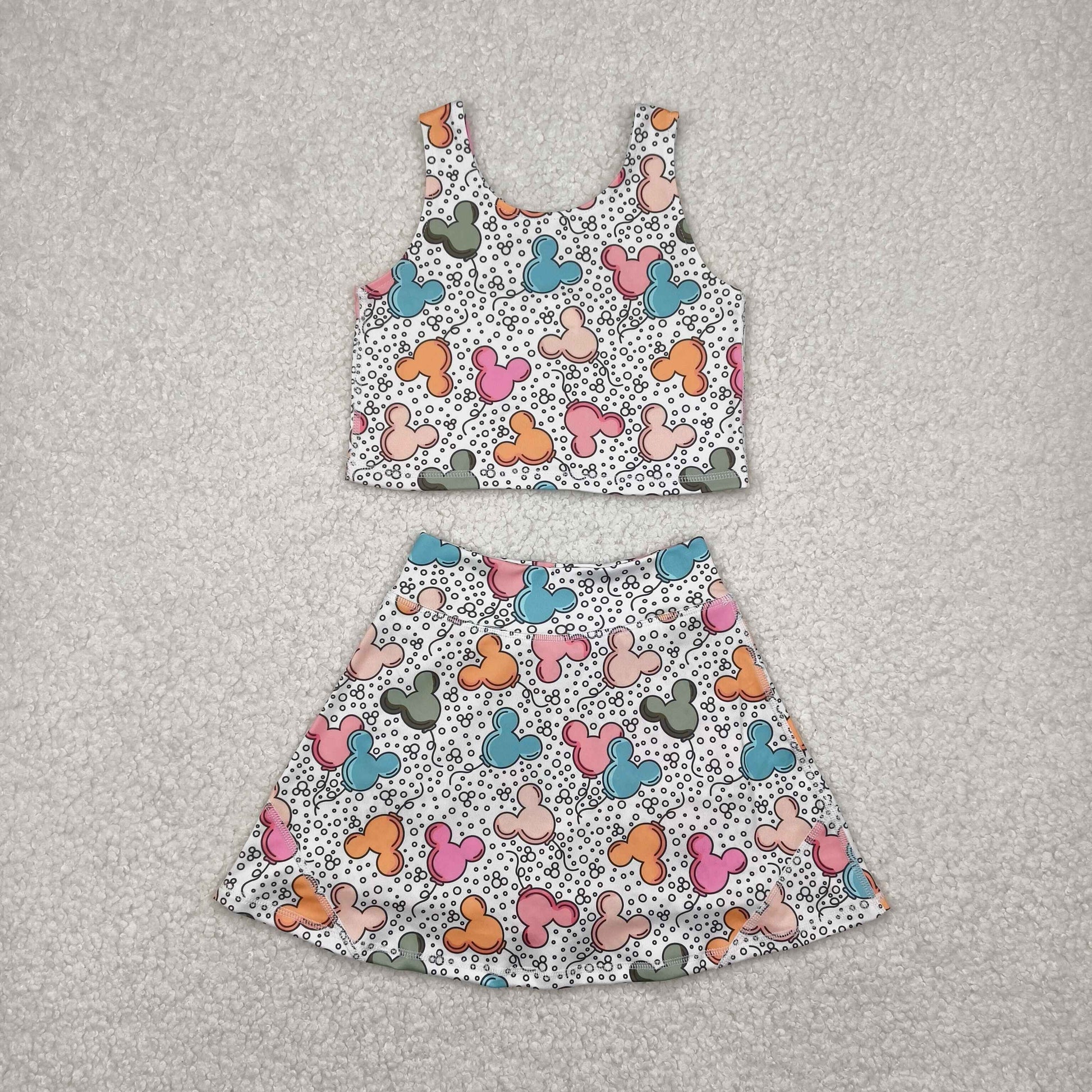 GSD2331 girls sleeveless cartoon mouse dot skirt outfits yoga