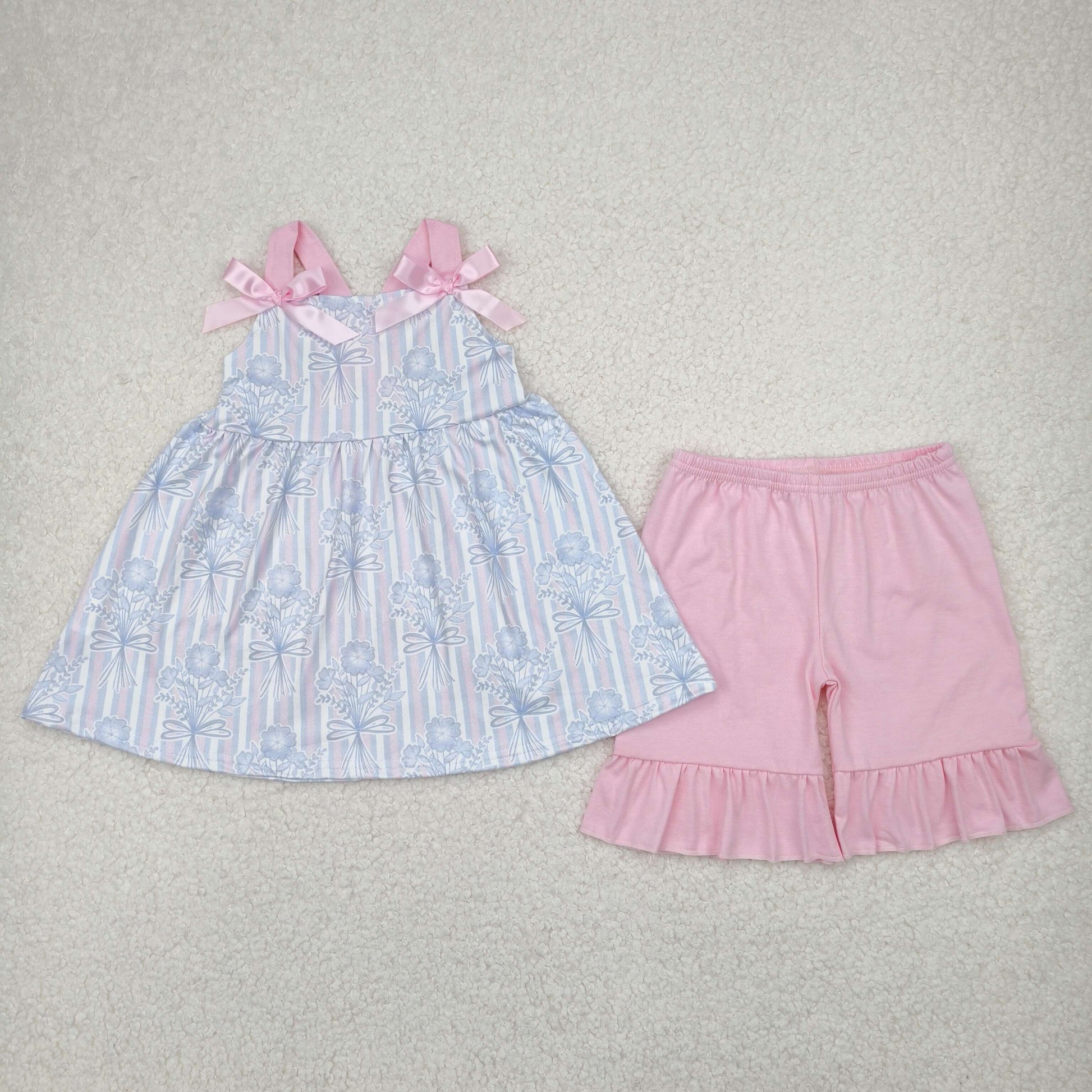 GSSO2429 baby girls blue flower bow pink shorts outfits