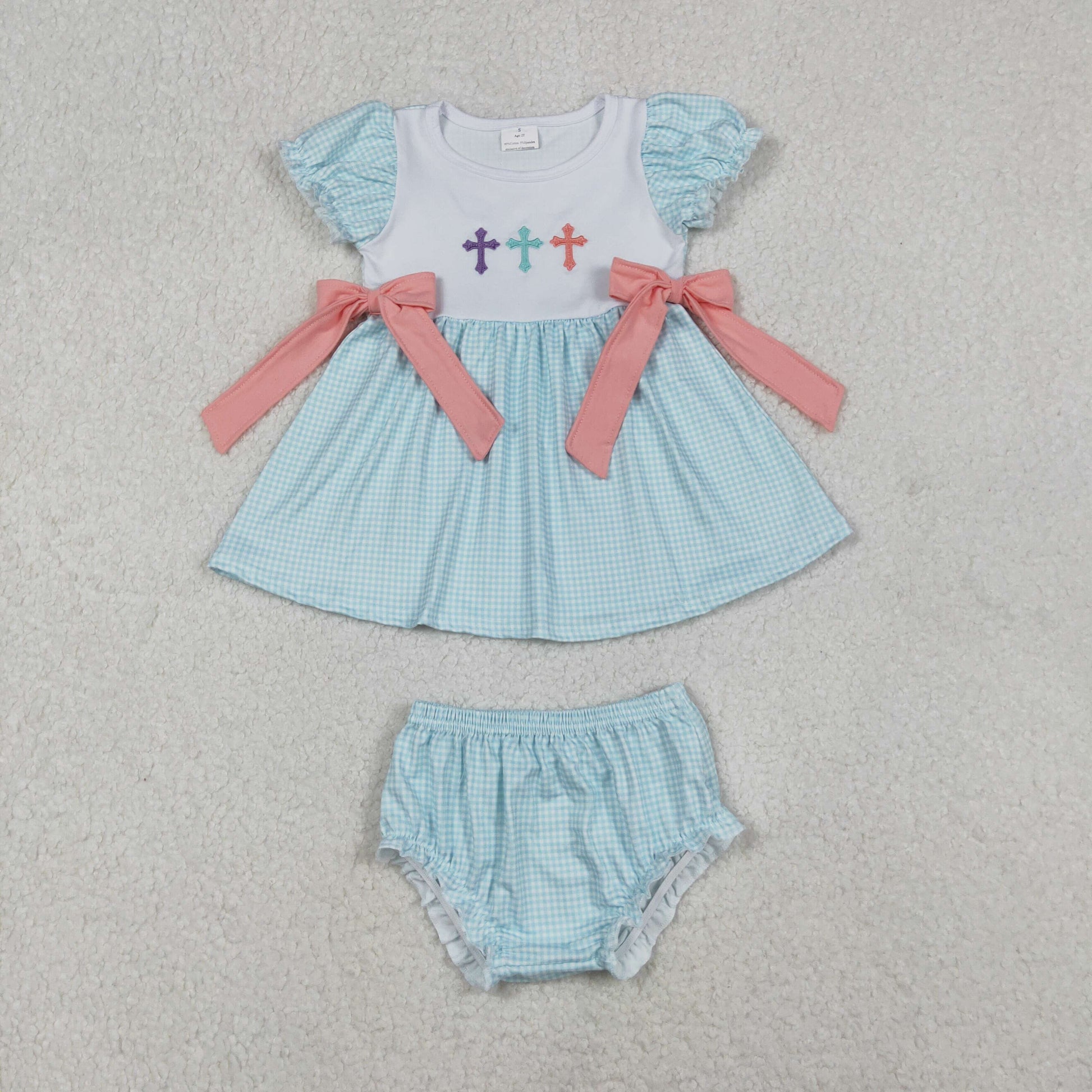 GBO0480 baby girls Easter blue bow bummies embroidery