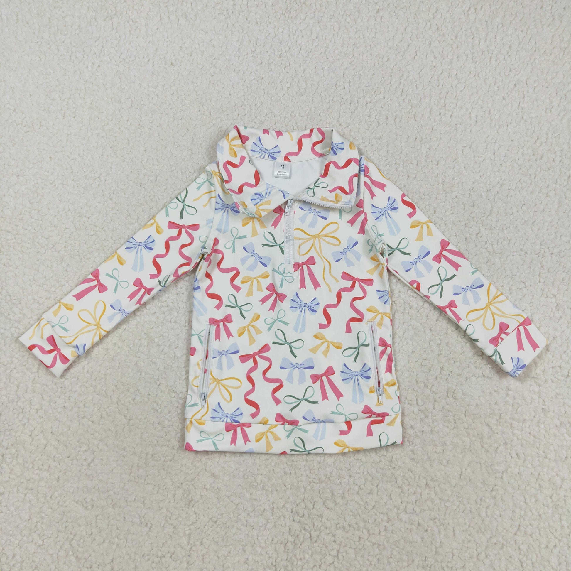 GT1065 baby girls colorful bow zipper long sleeve top yoga